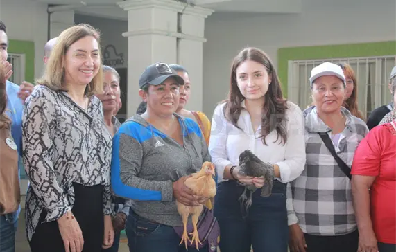 Cada jefa de familia fue beneficiada con un paquete que consta de 22 aves (20 hembras y dos machos) tres bolsas de alimento de 40 kilogramos, un sobre de antibiótico y cinco variedades de semillas para la siembra de hortalizas.
