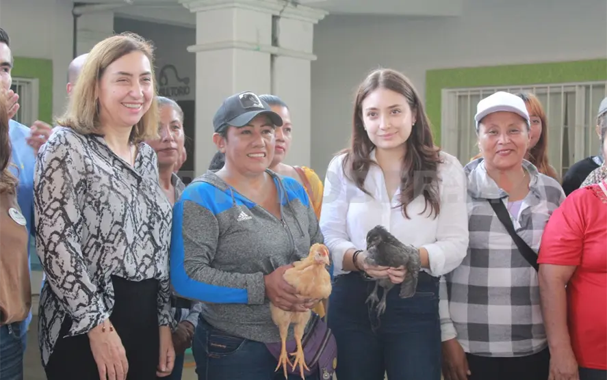 Con el objetivo de fomentar la producción de alimentos para el autoconsumo, la presidenta del DIF Villaflores, Margarita Sarmiento Tovilla, a nombre del Ayuntamiento que preside el doctor Mariano Rosales, entregó paquetes de aves de traspatio, beneficiando a 89 familias vulnerables de nueve localidades del municipio.