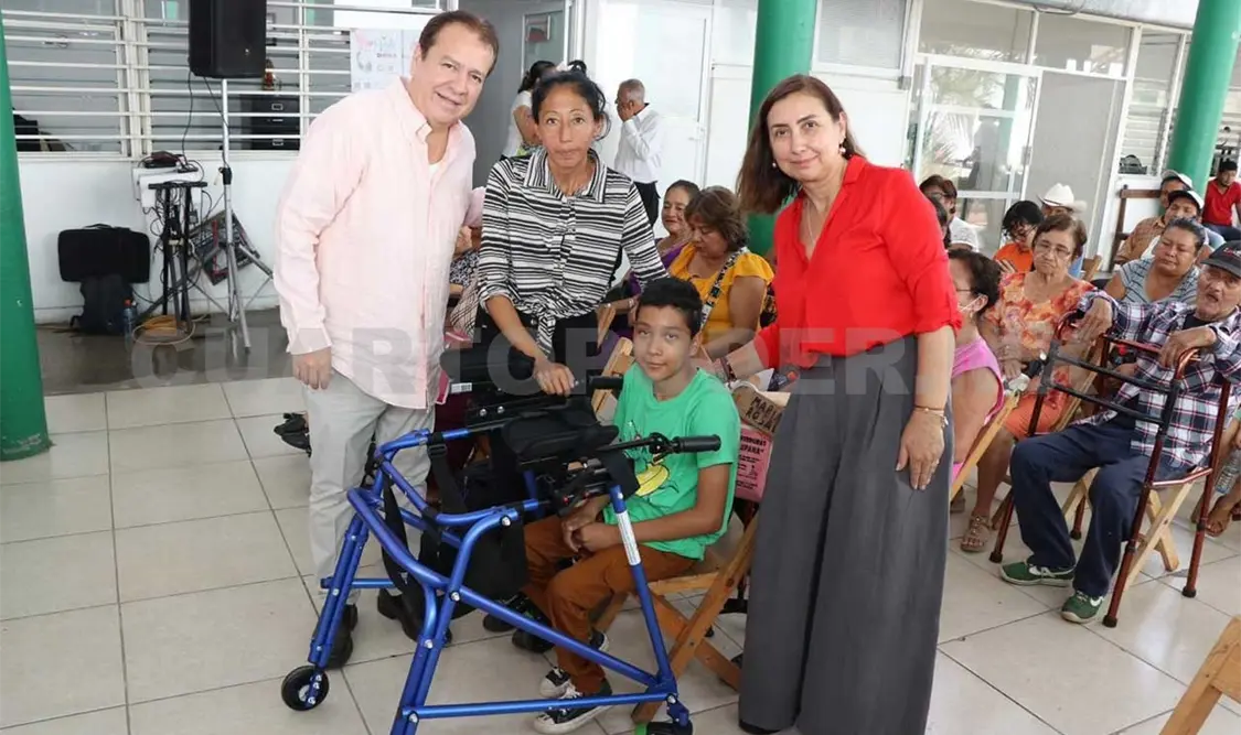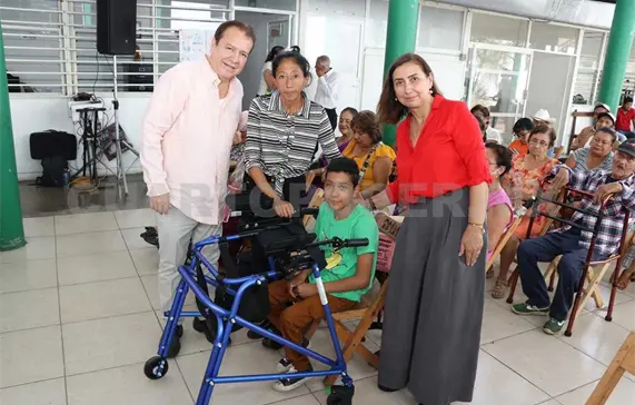 El alcalde de Villaflores, Mariano Rosales Zuarth, junto con su esposa Margarita Sarmiento Tovilla, entregaron de manera gratuita ayudas técnicas y lentes graduados a un total de 54 personas este martes. La entrega incluyó 13 sillas de ruedas estándar, tres sillas de ruedas infantiles, una silla de ruedas deportiva, una andadera posterior, un bastón para invidentes y 35 lentes graduados.