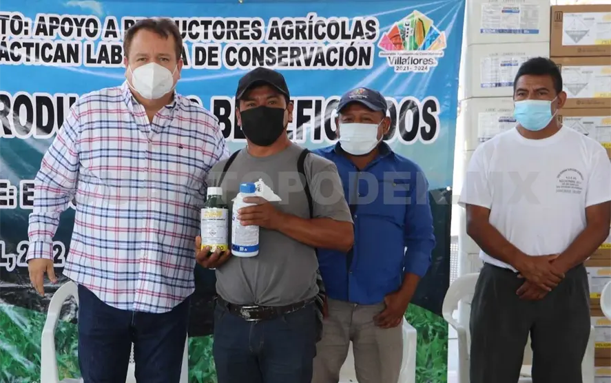 Durante el evento en el que se hizo entrega de insumos agrícolas y herramientas para la prevención de incendios forestales, el alcalde villaflorense exhortó a la población a usar los métodos tradicionales de limpieza de parcelas con el fin de preservar los recursos naturales.
