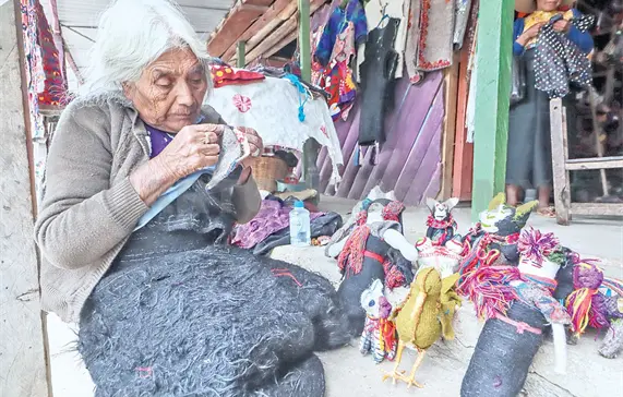 La menestral con ayuda de sus nietas elaboran blusas, sarapes, rebozos, una zoología de figuras, faldas, abrigos de lana y muchas piezas más que llevan una fragmento de historia y el sello distintivo de sus raíces indígenas.