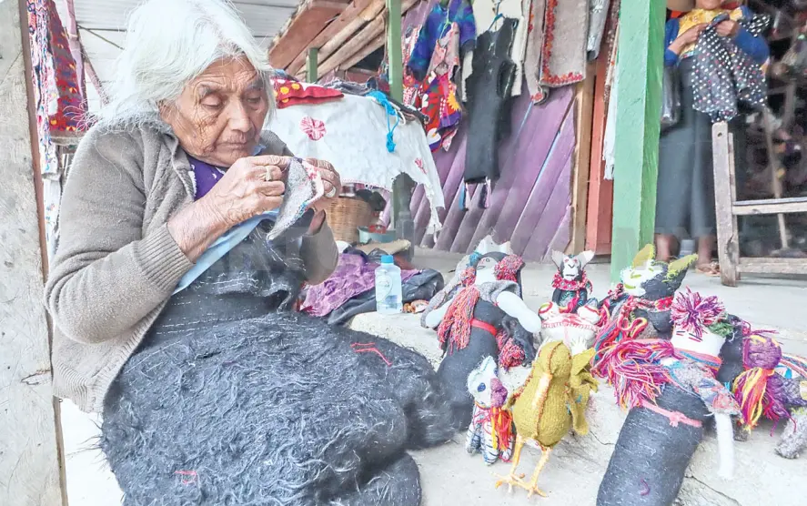 En la calle del cementerio, en el barrio San Sebastián, se encuentra la vivienda de la afable María Patisthtán Licanchitón, de 85 años, que como casi todas las mañanas desde hace décadas se embarca en la tarea de sentarse ante sus herramientas de trabajo: hilos, aguja, algodón y un telar de cintura para crear arte con sus manos.