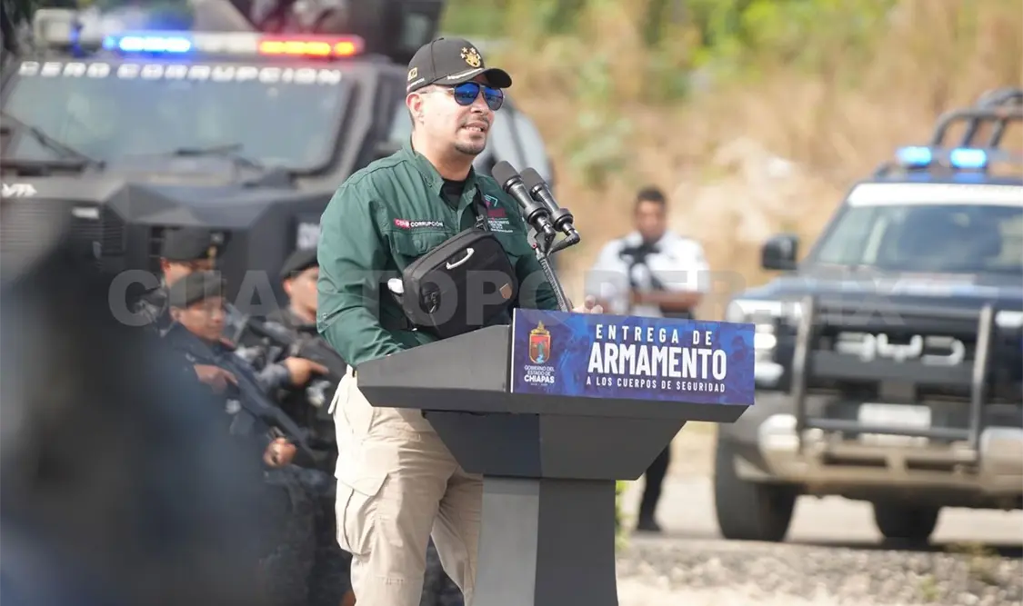 Alrededor de mil armas se entregarán a elementos de la policía en Chiapas este año, además de un helicóptero y vehículos tácticos ligeros (blindados), destacó el titular de la Secretaría de Seguridad del Pueblo (SSP), Óscar Alberto Aparicio Avendaño, esto como parte del fortalecimiento a la institución.