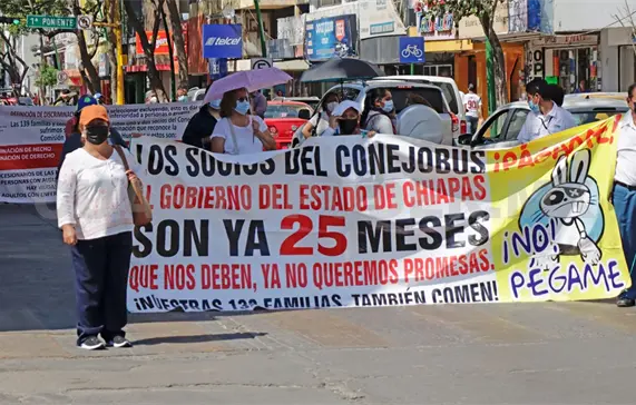 El martes marcharon por la avenida Central de Tuxtla Gutiérrez y mantuvieron un bloqueo en el cruce de la calle Central y avenida Central. Los hombres y mujeres, que en su mayoría son personas de la tercera edad, exigían la atención de las autoridades.