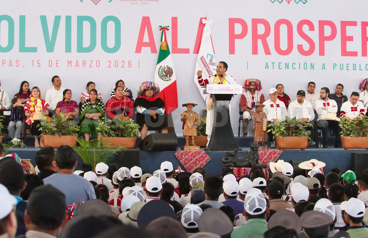 El gobernador de Chiapas, Eduardo Ramírez Aguilar, acompañado de alcaldesas y presidentes municipales, firmó una declaratoria bajo el lema del “Olvido a la Prosperidad” para atender las zonas rezagadas.
