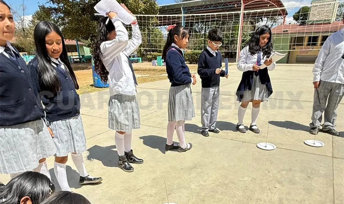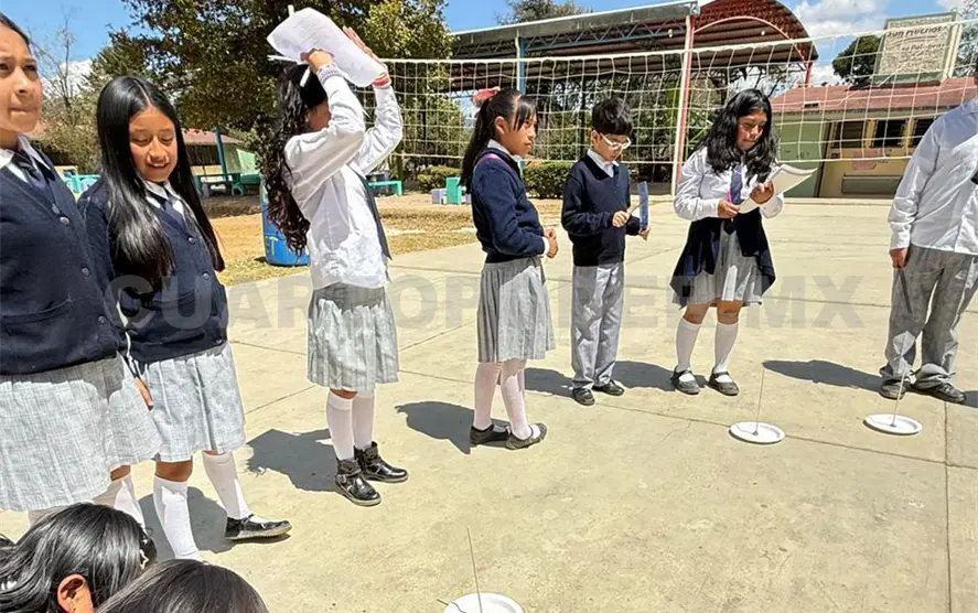 Dijo que “derivado del contenido de la película, empezamos trabajando con las matemáticas mayas. Realmente debe de ser por el antecedente que los niños ya tienen del sistema decimal de numeración que lo adquieren fácilmente, sobre todo por el método que usamos que más que en abstracto lo hacemos por procesos de cambio. Cuando llegamos a 5 puntos hacemos cambios por raya, es decir, quitamos 5 puntos y ponemos una raya y cuando llegamos a cuatro rayas hacemos cambio de color y ahí sería 20”.