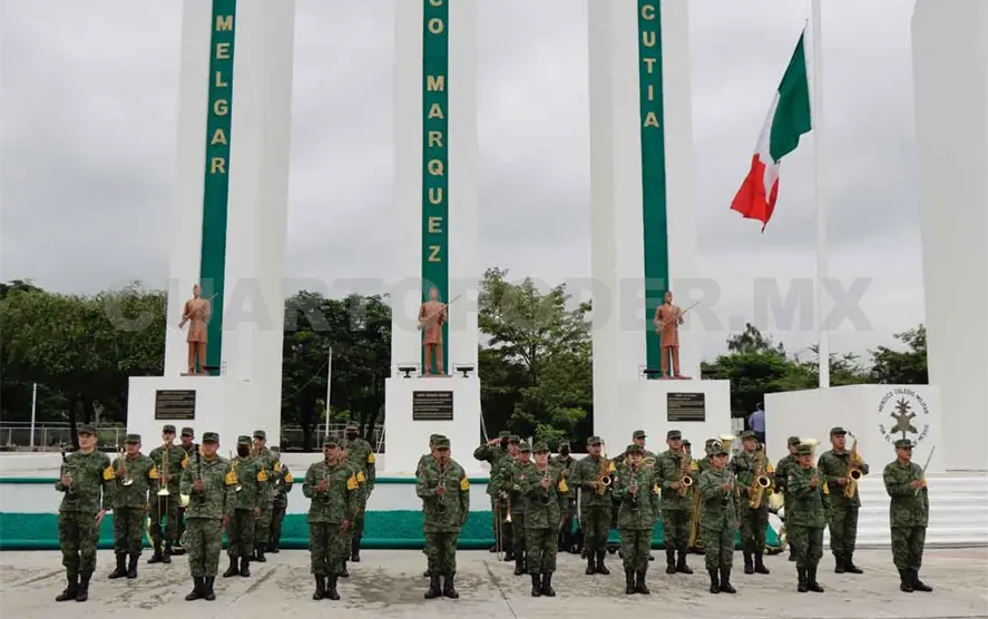 Acto seguido, el gobernador del estado se alista para montar una guardia de honor al pie de las estatuas de los héroes.
