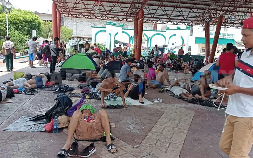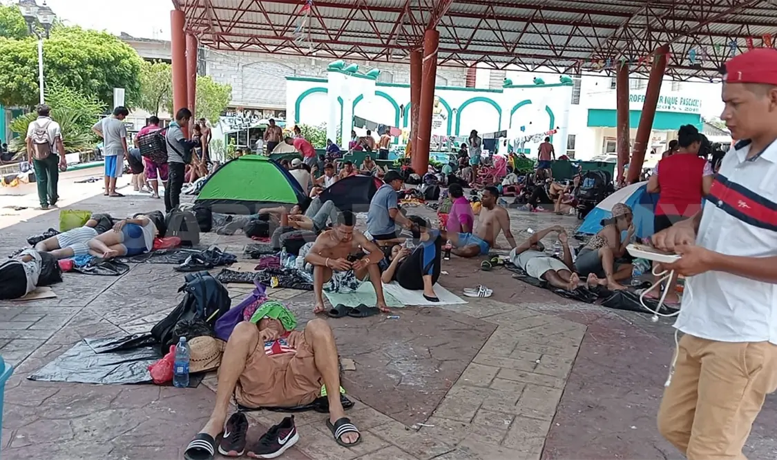 Unos 200 migrantes de diversas nacionalidades arribaron a Huixtla tras caminar desde Tapachula, de donde salieron con la finalidad de ir al norte del país y llegar a los Estados Unidos.