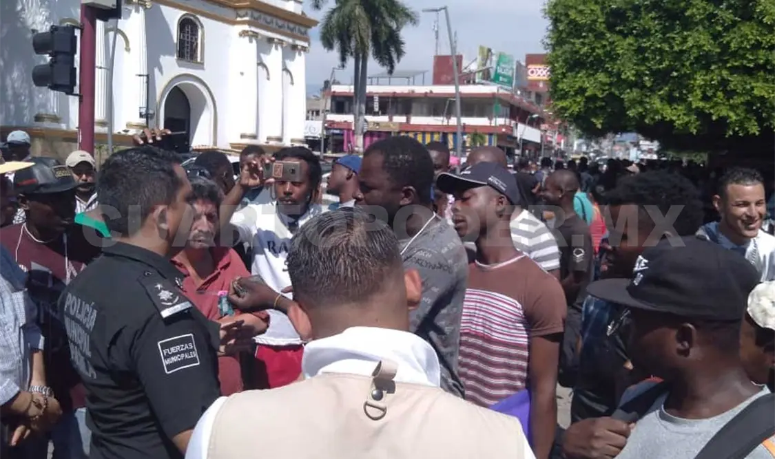 Elementos de la Secretaría de Servicios Públicos y de la Policía Municipal emprendieron acciones para evitar que migrantes extracontinentales realicen vendimias en los parques Miguel Hidalgo, De las Etnias y Benito Juárez, en el centro de Tapachula.