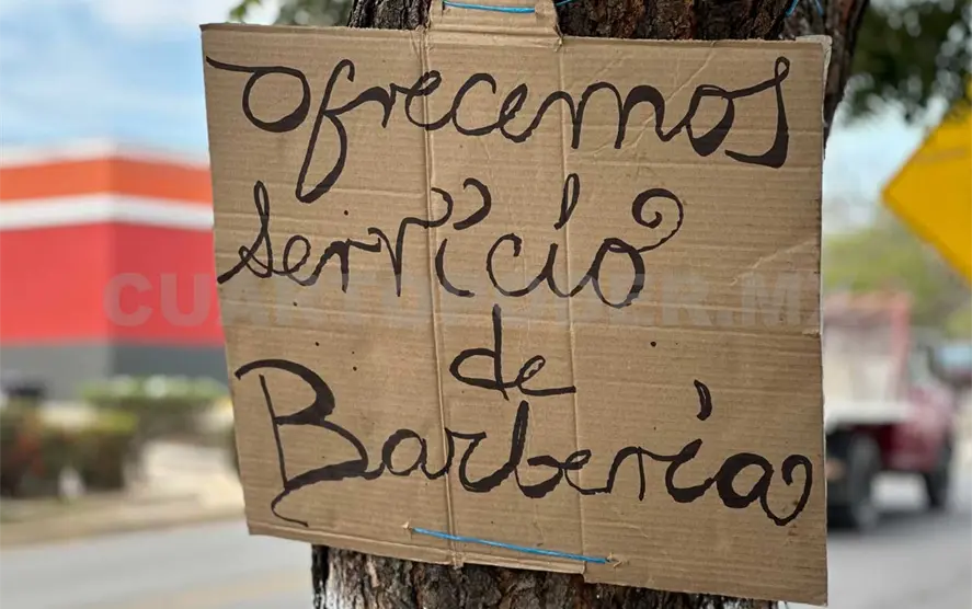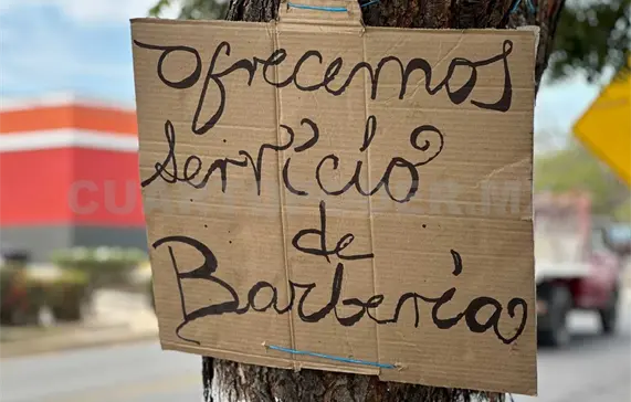 Este es el caso de Darwin Rodríguez, alias “el Chino”, quien con un cartón hizo la publicidad para su establecimiento de barbería.
