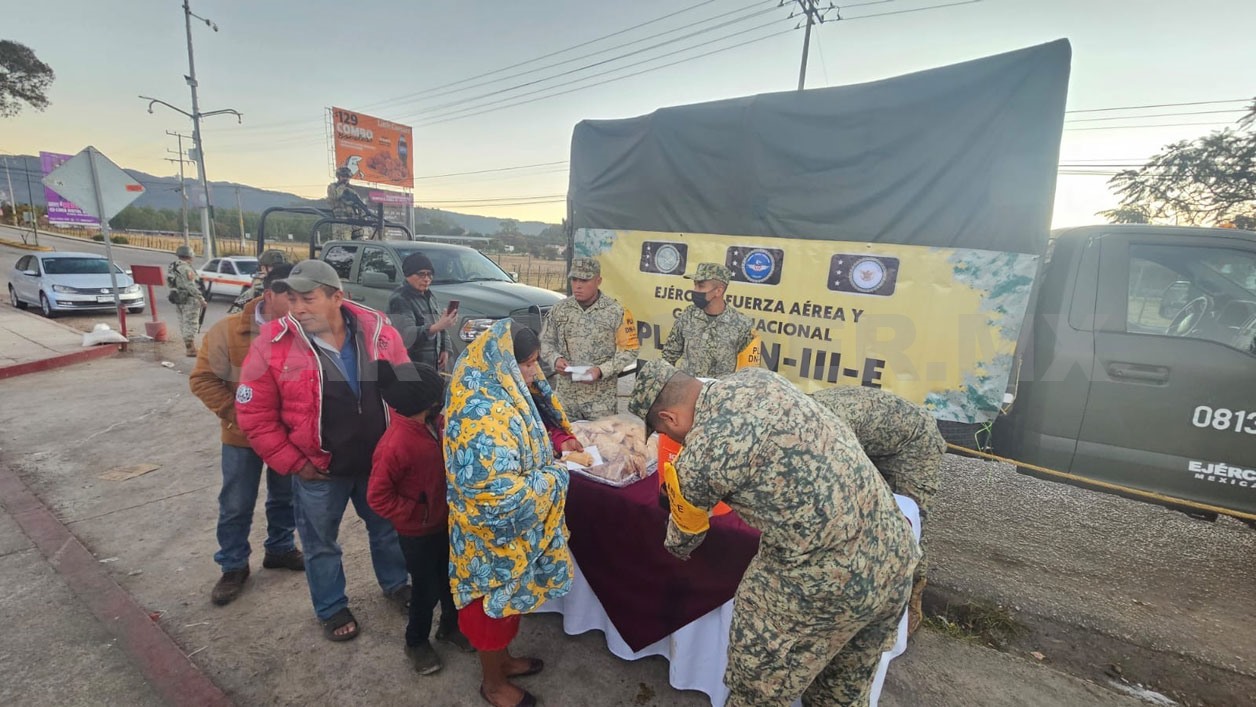 “Esta actividad se realizó con el objetivo de socorrer a la población durante las afectaciones ocasionadas por las bajas temperaturas que se han presentado en esta localidad”, informó la Secretaría de la Defensa nacional (Defensa) en un comunicado.