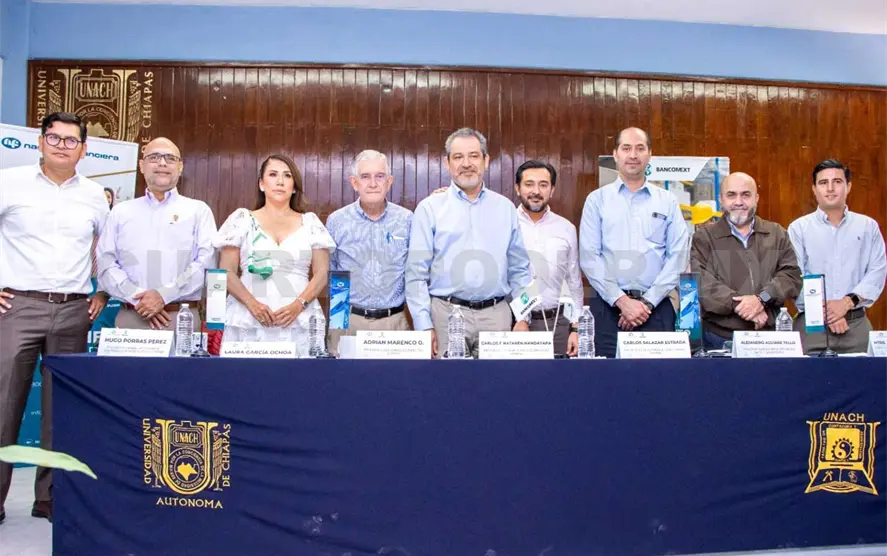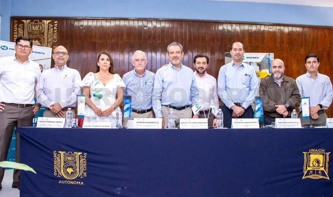 Ante la presencia del rector de la Universidad Autónoma de Chiapas (Unach), Carlos F. Natarén Nandayapa, servidoras y servidores públicos federales y estatales, de la banca comercial, así como representantes del sector empresarial reunidos en el auditorio de la Facultad de Contaduría y Administración de la universidad, el titular de la SEyT consideró indispensable abordar temas cruciales que contribuyen directamente al crecimiento y la estabilidad de las empresas chiapanecas. Al mismo tiempo, agradeció a Julio César Sida Velasco, ejecutivo de Promoción Chiapas de Nacional Financiera, la invitación a participar en este evento.