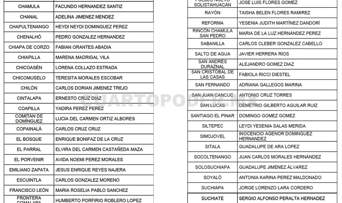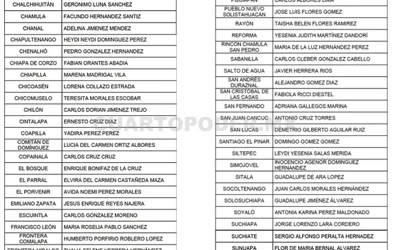 También fueron nombrados Lucía del Carmen Ortiz Albores, en Comitán; Valeria Rosales Sarmiento, Villaflores; y César Marín, en Tecpatán. El listado completo está disponible en nuestras plataformas digitales.