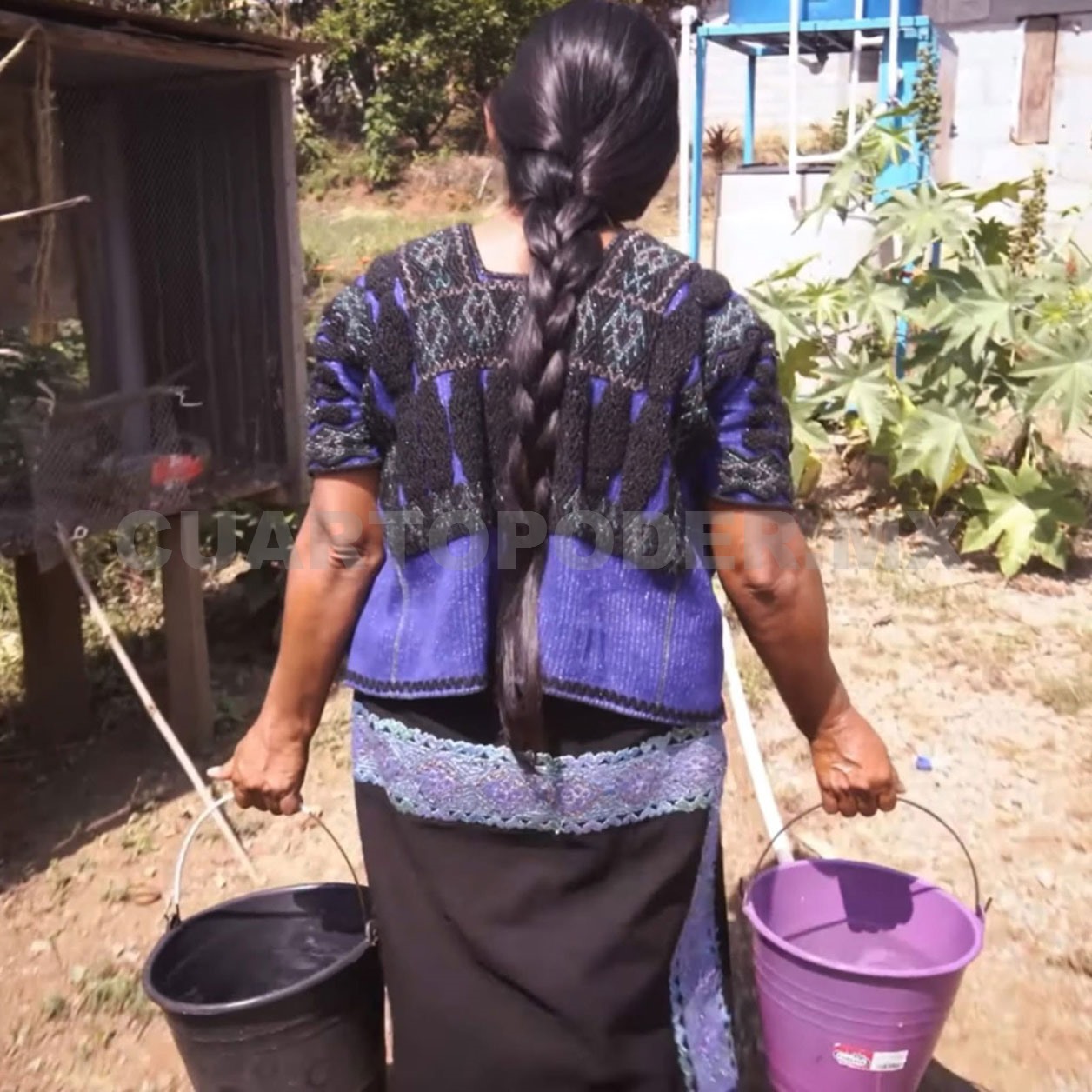 En Bachen, municipio de Chenalhó, las mujeres, además de realizar actividades domésticas, también se encargan del acarreo de agua, así lo expuso la asociación Cántaro Azul a través de testimoniales en los que se señaló que para algunas habitantes el recorrido desde el pozo a su casa puede llegar a ser de hasta media hora.