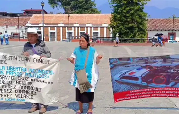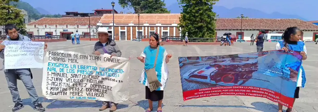 Mujeres de San Juan Cancuc se manifestaron la mañana de ayer lunes, en la Plaza Catedral de San Cristóbal de Las Casas, para exigir la liberación de sus esposos.