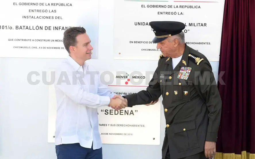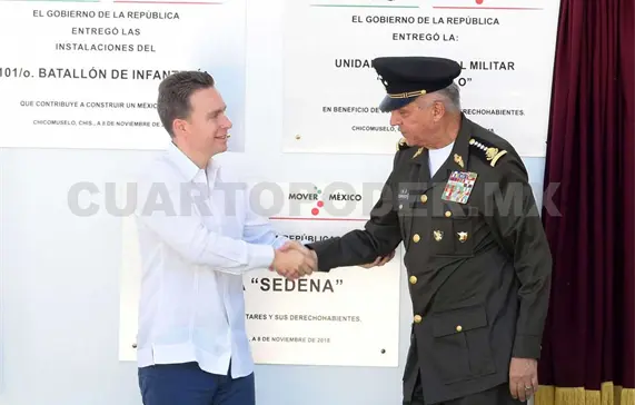 El secretario de la Defensa Nacional, Salvador Cienfuegos Zepeda y el gobernador Manuel Velasco Coello, inauguraron del Cuartel del 101 Batallón de Infantería y Unidad Habitacional del Ejército Mexicano, en el municipio de Chicomuselo, con lo que se mejora la economía y seguridad en Sierra chiapaneca.