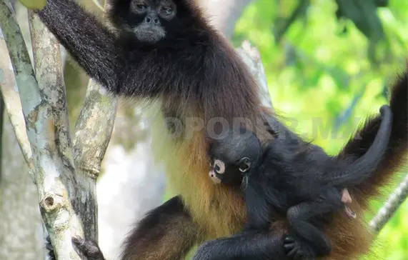El nombre maya chol del mono araña es ijc’al max. El mono araña es un primate diurno, de hábitos arborícolas. Vive en grupos que constantemente se desplazan entre la cobertura vegetal en busca de alimento.