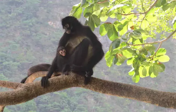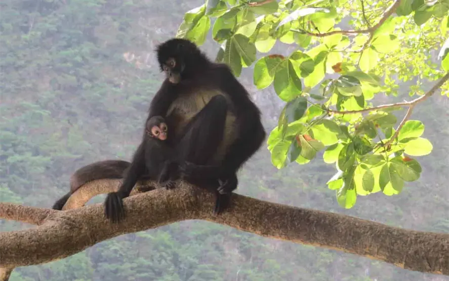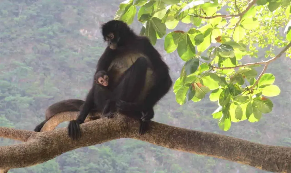 Este lunes la Comisión Nacional de Áreas Naturales Protegidas (Conanp), a través de la Dirección del Parque Nacional Cañón del Sumidero dio a conocer el nacimiento de una cría hembra de mono araña (Ateles geoffroyi vellerosus) en esta ANP.