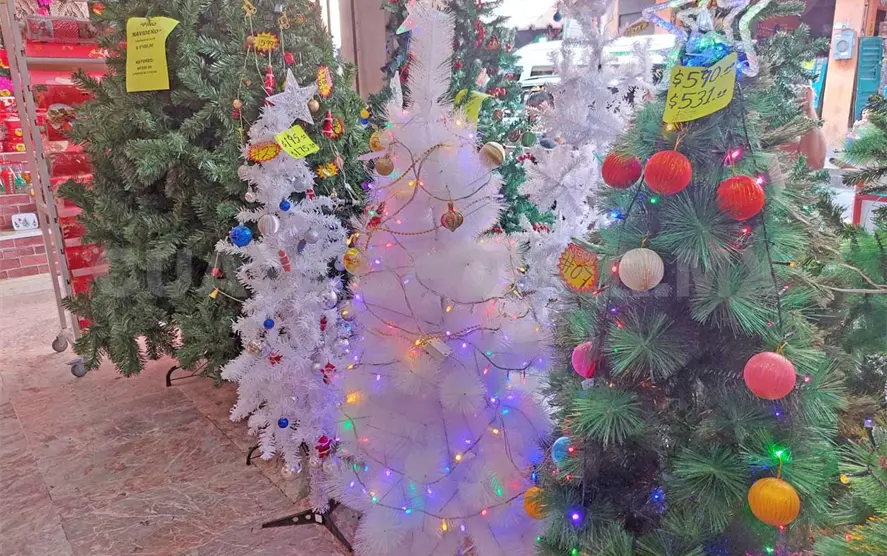 En árboles hay de todos los tamaños y colores, desde el tradicional pino verde, blanco, verde con blanco (que simula la nieve) y hasta de color negro. Así mismo, en luces también hay una gran variedad como: de cascada, en tubo, estrellas y por tiras.