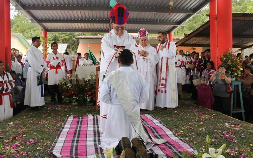 El indígena fue ordenado por el obispo coadjutor de la Diócesis de San Cristóbal de Las Casas, Enrique Díaz Díaz, quien junto con el obispo Felipe Arizmendi Esquivel concelebró la misa, toda en tseltal, incluida la homilía y los coros.