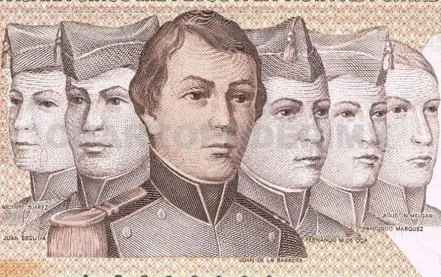 Juan Escutia es de quien más resuena su nombre en los libros y relatos históricos. Se cuenta que al notar el avance inminente de las tropas estadounidenses, decidió envolverse en la bandera nacional y lanzarse a las rocas para evitar que fuera mancillada.