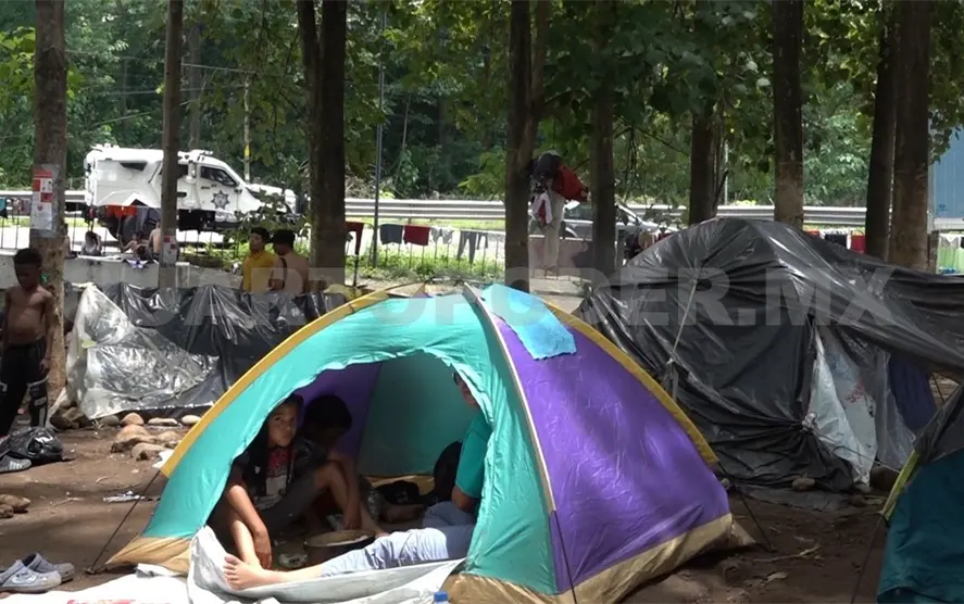 Las políticas migratorias implementadas por el gobierno mexicano, que obligan a grupos de familias con hijos menores a una larga espera de sus trámites, provoca que estos ante la carencia de recursos económicos traten de sobrevivir como puedan. Un ejemplo de esto es el campamento improvisado en la comunidad Viva México en Tapachula, en la que familias completas permanecen a la intemperie y en un ambiente insalubre.
