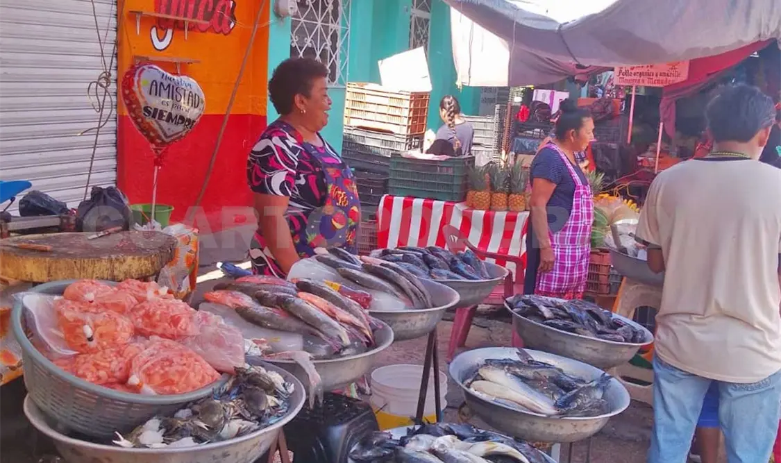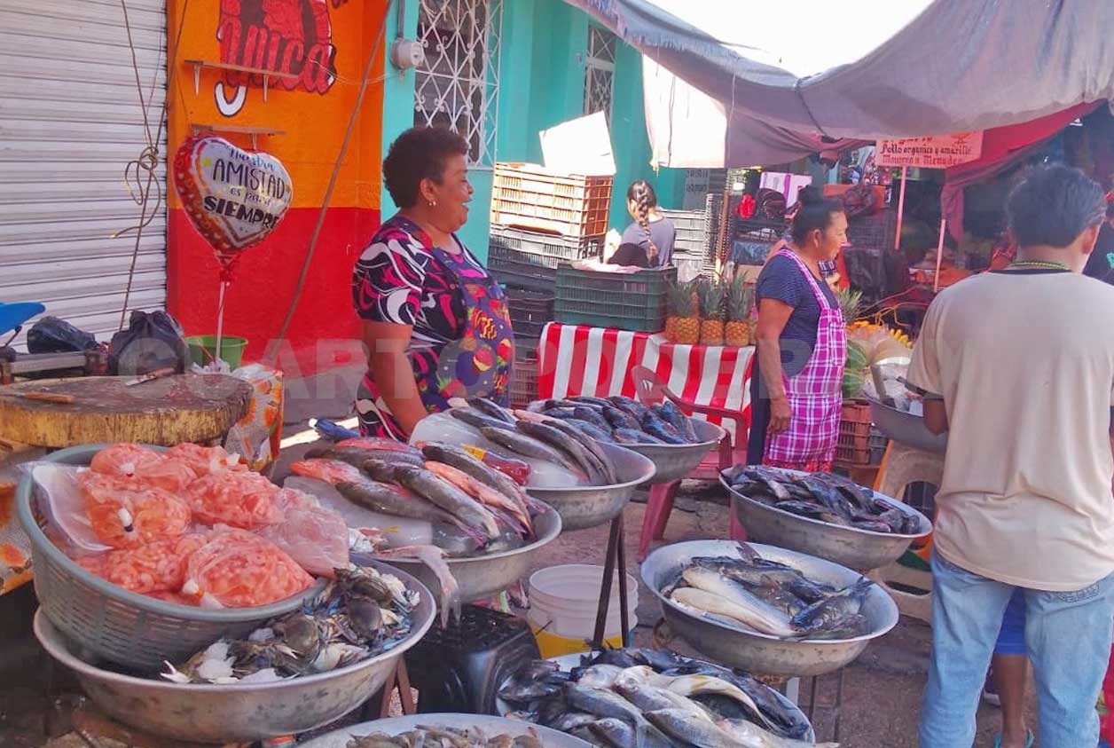 Los comerciantes de pescados trajeron producto como lisas, mojarra y robalo desde la pesquería de Paredón, pero, hasta las 15 horas la situación marchaba mal.