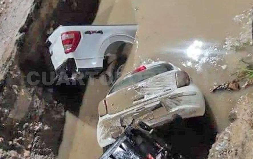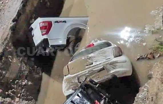Otro conductor aventurado fue el de una camioneta que circulaba sobre la vía lateral del Libramiento Norte, a la altura del parque de los Niños Héroes, quien también se animó a continuar su camino y por poco y no la cuenta, pues tuvo la fortuna de poder escapar de la unidad antes de que un pozo se lo “tragara”; a él también se le sumó el conductor de un automóvil compacto, que para su fortuna fue rescatado por personal de atención a emergencias, justo segundos antes de que la unidad se sumergiera en las lodosas aguas.