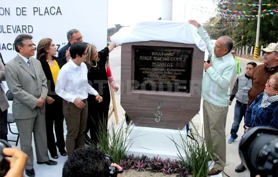 La develación de la placa con lo que el bulevar lleva formalmente ese nombre estuvo a cargo de Marcia Cortés, viuda de Jorge Macías.