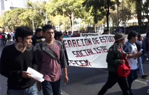 Los estudiantes que desde el pasado sábado se trasladaron al centro del país, se unieron al contingente de las nueve escuelas de diferentes estados que participaron en la marcha que partió del Ángel de la Independencia hacia el Zócalo.