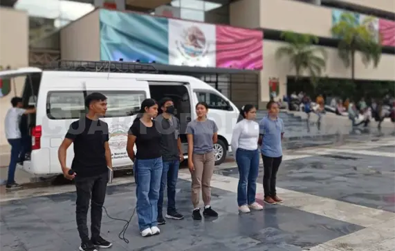 Estando en la plaza central protestaron por el abuso de poder del Estado Mexicano al perpetrarse la desaparición de 43 estudiantes de la Escuela Normal Rural “Rafael Isidro Burgos”, en Ayotzinapa, Guerrero, el 26 septiembre del 2014.