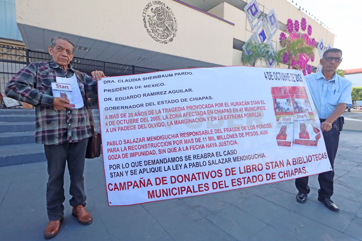 Primeramente dio a conocer que el pasado 4 de octubre con motivo al 20 aniversario del paso del Huracán Stan inició una campaña de donaciones a bibliotecas públicas del libro: “Stan, la Tragedia Pluvial en Chiapas. El desastre político (segunda parte)”. El volumen fue entregado en diversas partes del estado incluyendo la biblioteca capitalina Jaime Sabines.