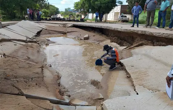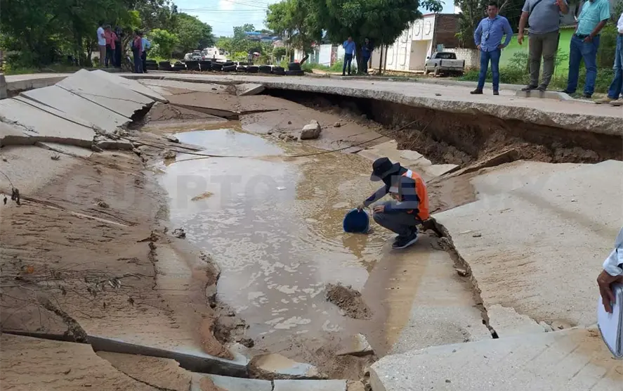 El alcalde Francisco Nava dijo que no será tapadera de nadie y que procederá en contra de quien tenga que responder por este mal trabajo que costó cerca de 38 millones de pesos y que por el socavón que ya se formó, se confirma que la obra no fue bien realizada.