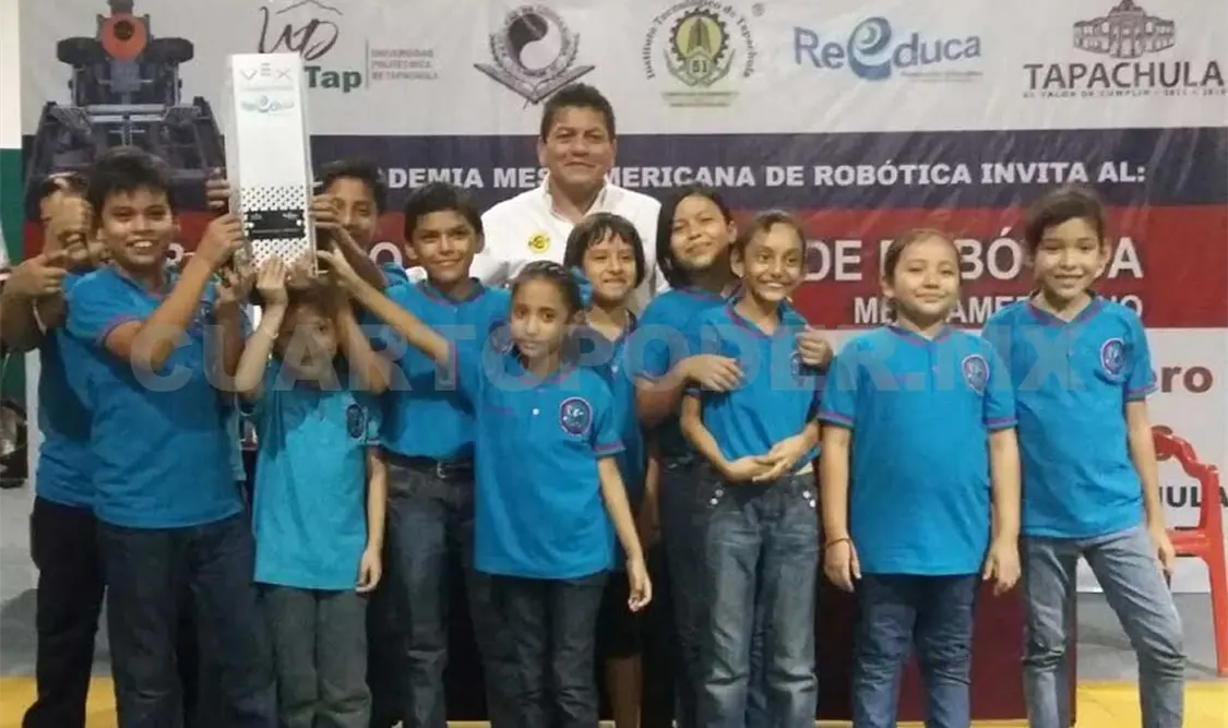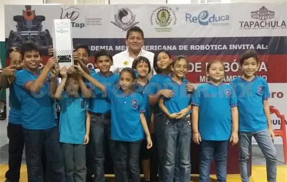 Niños miembros del equipo de robótica perteneciente a la Escuela Primaria México, de la ciudad de Tapachula, lograron el pase directo al mundial en esta disciplina, que se llevará a cabo en Kentucky, Estados Unidos.