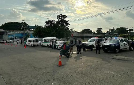 En Tapachula, a la altura del entronque y libramiento Sur Poniente, participaron elementos del Grupo Especial de Reacción Inmediata (GERI), la Policía Estatal Vial Preventiva, la Vialidad Municipal, la Secretaría de Seguridad Pública Municipal Canina K-9 y personal de la SMyT.