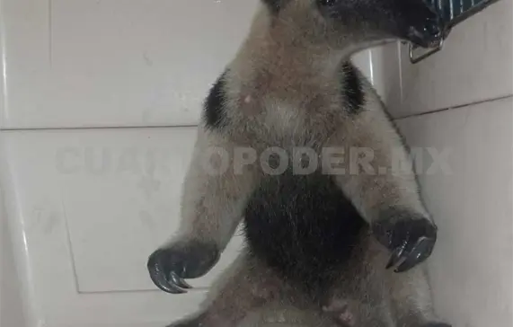 El oso hormiguero fue rescatado por personal de Protección Civil del municipio de Pichucalco, después de recibir un reporte anónimo por parte de habitantes de una colonia del citado municipio.