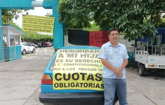 “Sacó su ficha, presentó su examen, lo pasó… pero resulta que el señor director no ha aceptado inscribir a mi hija porque me está obligando a pagar la cuota que se supone es voluntaria. Tiene más de un mes que estoy en pláticas con él; de hecho, por escrito y de manera verbal sabe que no tengo dinero. Soy trabajador de esta escuela, pero tengo muchos gastos”, argumentó.