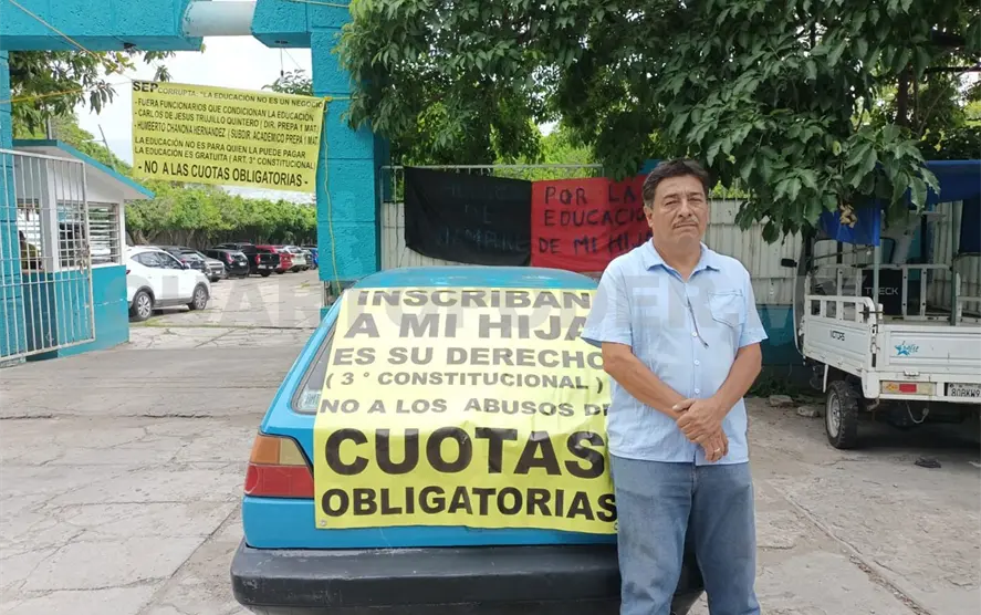 Un padre de familia de la Escuela Preparatoria núm. 1 de Tuxtla Gutiérrez inició una huelga en la entrada de esta institución para exigir que se le permita inscribir a su hija, argumentando la falta de recursos y una alta cuota escolar en este ciclo.