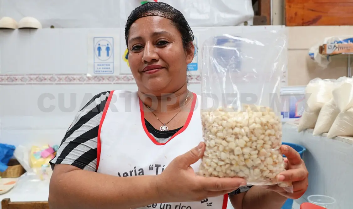 Si gustas agregar chorizo a la carnita asada, el costo es de 140 pesos por kilogramo. Ahora bien, si tu opción es el pozole, el kilogramo de maíz para este caldo está en 30 pesos y puedes conseguirlo en el área de venta de pozol.