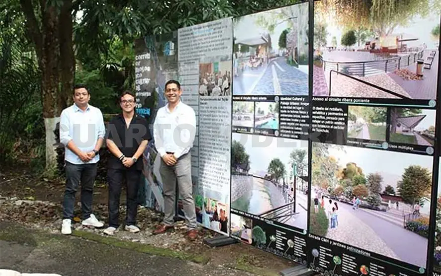 Señalaron que el proyecto consiste en convertir alrededor de 150 metros del entorno de los márgenes del río Texcuyuapan en un espacio agradable y funcional para esparcimiento y tranquilidad.