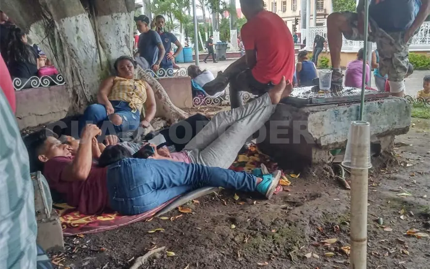 Migrantes —en un alto porcentaje de Venezuela— que están a la espera de resultados de sus trámites migratorios, han convertido al Parque Central “Miguel Hidalgo”, en el centro de Tapachula, en su campamento, toda vez que se han apoderado de las jardineras y bancas para dormir y hasta para hacer sus necesidades fisiológicas.