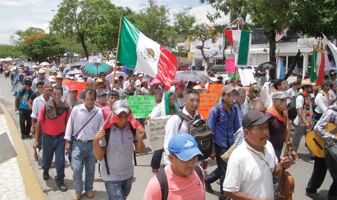 Fueron personas procedentes de Palenque, Tila, Tumbalá, Salto de Agua, Simojovel y San Cristóbal de Las Casas, quienes al son del tambor, la guitarra, el caracol, arengas y cantos religiosos emprendieron la movilización desde el Parque Chiapasiónate hasta el Parque Central de esta ciudad capital.