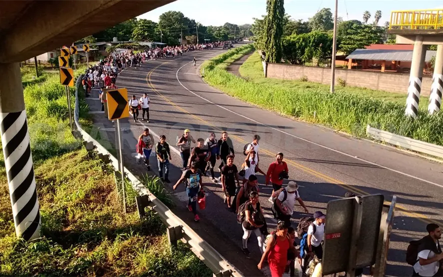Unos tres mil migrantes, entre ellos familias completas, niños en brazos y hombros de sus padres, partieron en caravana de la población fronteriza de Ciudad Hidalgo hacia Tapachula y de ahí continuarán hacia el norte del país.