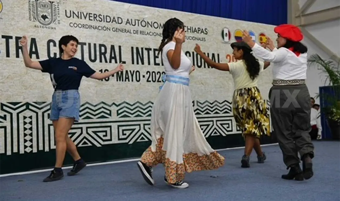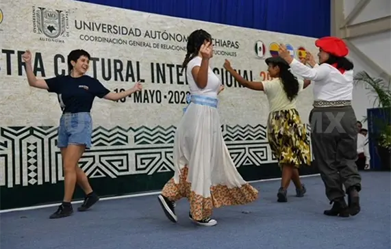 Bailables, música y gastronomía de España, Colombia, Argentina y México, formaron parte de la Muestra Cultural realizada por los estudiantes que participan en el Programa de Intercambio y Movilidad Académica de la Universidad Autónoma de Chiapas.