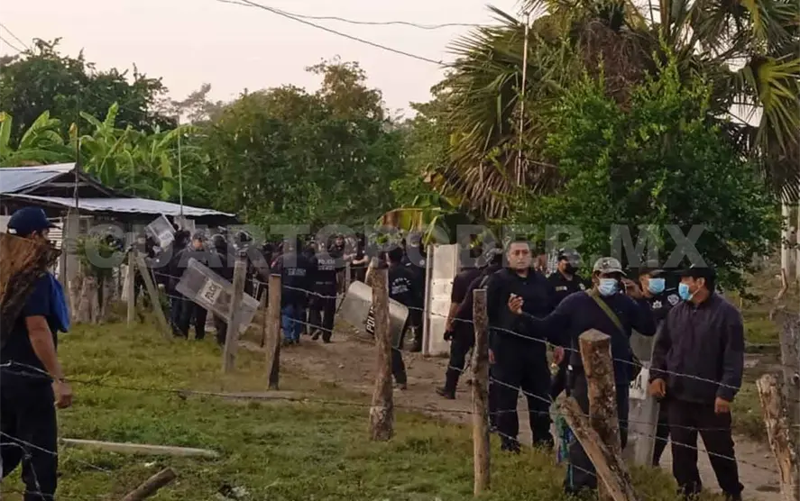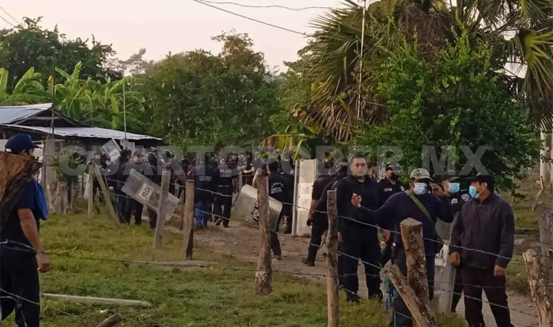 Elementos de la Secretaría de Seguridad y Protección Ciudadana (SSyPC) participaron en la diligencia de restitución del predio ubicado en el ejido El Esfuerzo Campesino y su anexo Nueva Esperanza, en el municipio de Pijijiapan.