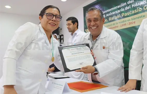 El secretario de Salud de Chiapas, Francisco Arturo Mariscal Ochoa, acompañado de la directora del Hospital Regional “Dr. Rafael Pascasio Gamboa”, Fabiola Eneida Orantes Mancilla, entregó reconocimientos a 15 médicas y médicos que han sido directores de esta unidad en los últimos años.