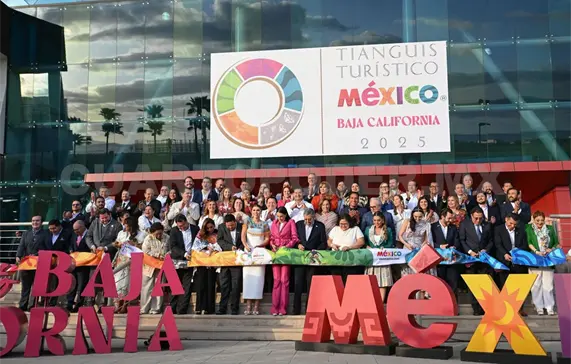 Posteriormente, en las instalaciones del Baja California Center, Eduardo Ramírez participó en el corte de listón inaugural del Tianguis Turístico México 2025 y recorrió los pabellones de diferentes estados, visitando también el de Chiapas.