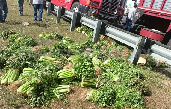 En entrevista y en representación de un grupo de introductores de frutas y verduras del mercado “San Juan”, la comerciante Arely Peñuela expuso que ellos tienen ocho camiones que permanecen varados en la carretera a una temperatura mayor a los 36 grados, con productos perecederos que ya son inservibles.
