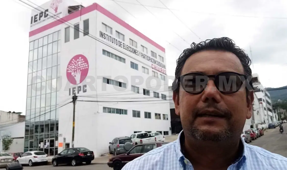 El periodista chiapaneco, César Cancino Kassab, se manifestó a las afueras del Instituto de Elecciones y Participación Ciudadana (IEPC) de Chiapas para denunciar una posible afectación a su derecho de informar.