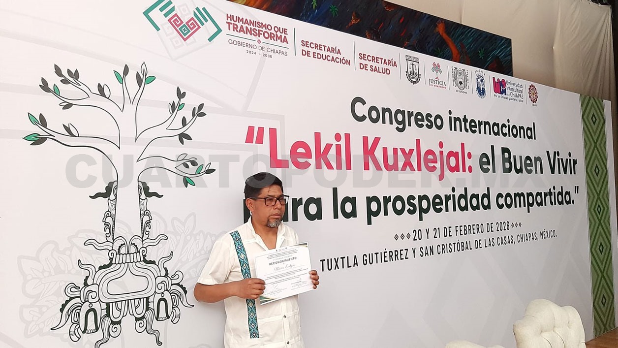 El reconocimiento fue otorgado por el secretario de Educación de Chiapas, Roger Adrián Mandujano Ayala, así como por la Universidad Intercultural de Chiapas (Unich), durante un encuentro con representantes del ámbito académico e intelectual.